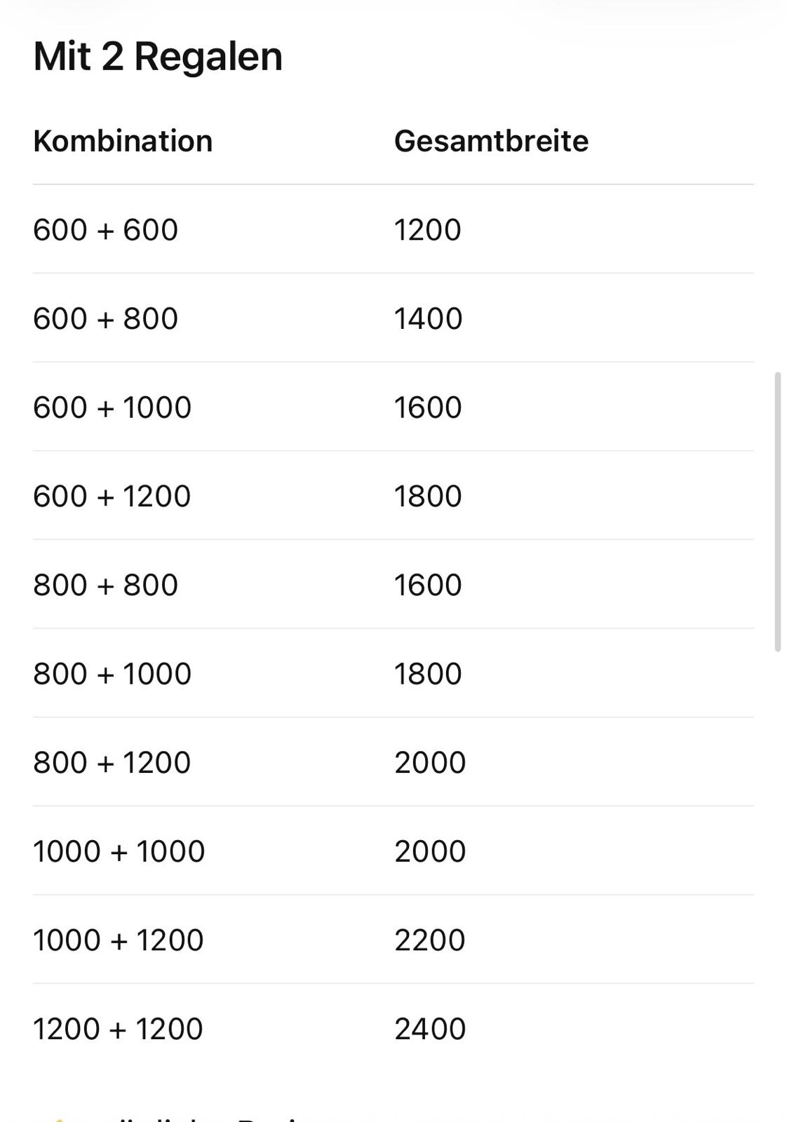 - Regalbeine aus Winkelprofil 40x40 mm, Materialstärke mindestens 1,5 mm