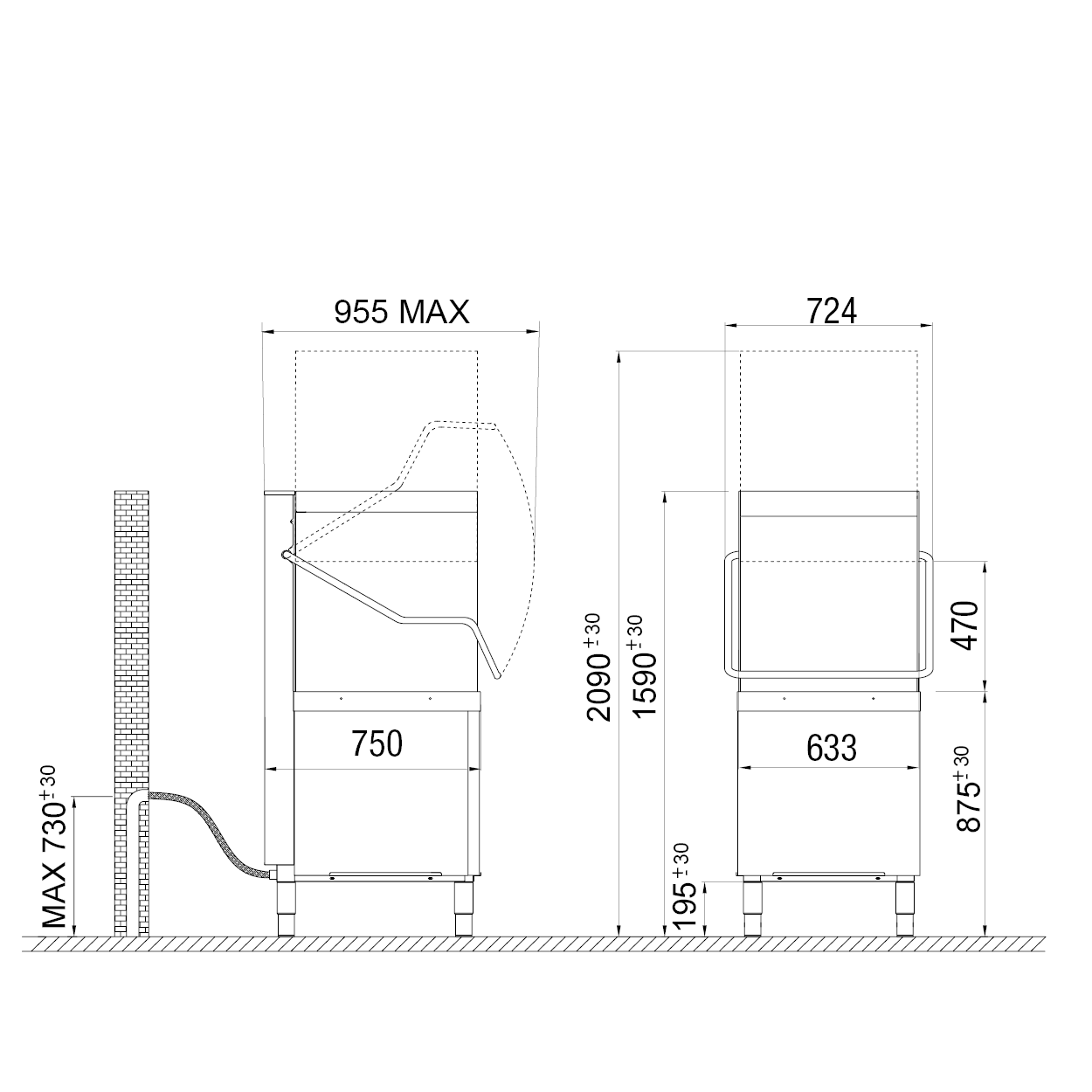 Einschubhöhe von 465mm Max Gläser / Tellerhöhe: 450mm