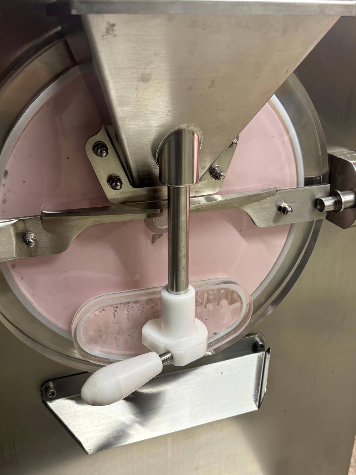 Die Maschine verfügt über einen breiten, spritzsicheren Einlass, der es Ihnen ermöglicht, jederzeit während des Betriebs weitere Zutaten hinzuzufügen. Ob Früchte, Nüsse, Schokolade oder andere kreative Ideen – Ihrer Fantasie sind keine Grenzen gesetzt. Die spritzsicheren Teile sorgen dafür, dass der Arbeitsplatz sauber bleibt und der Bediener optimal geschützt ist.