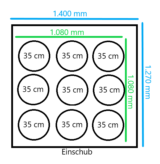 Abmessungen Innen: Höhe 140mm x Breite 1080mm x Tiefe 1.080mm