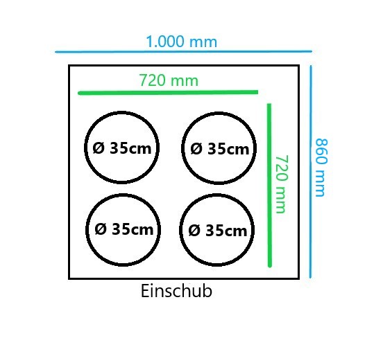 Abmessungen Innen: Höhe 140mm x Breite 720mm x Tiefe 720mm